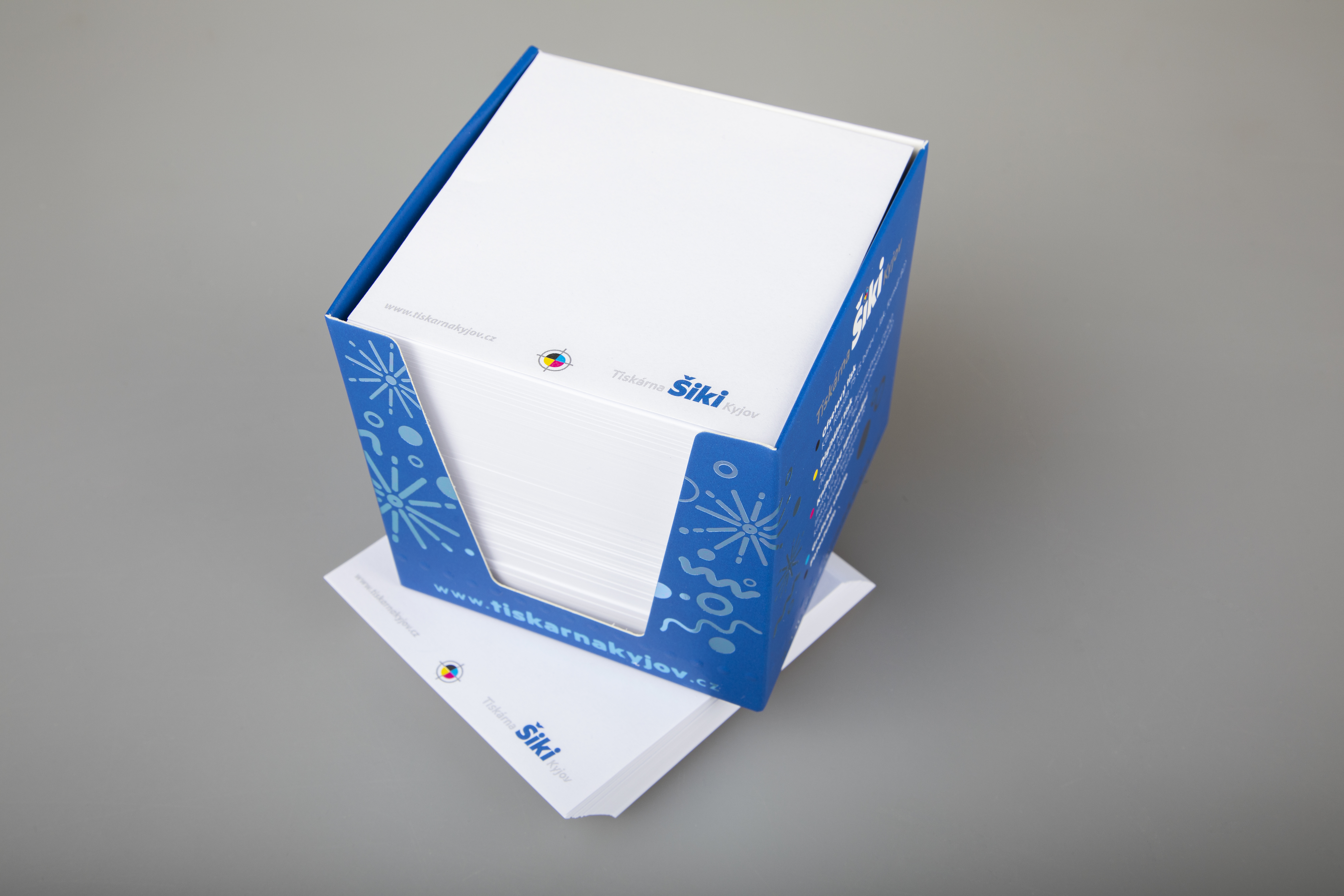 Navrhneme Vám vzhled kostky přesně podle Vašich představ a požadavků. Kostka se zkládá z krabičky a poznámkového bločku na který si také můžete zvolit potisk.